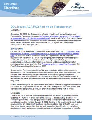 Gallagher’s Compliance Consulting practice shares highlights from the Part 49 FAQs, including guidance on: