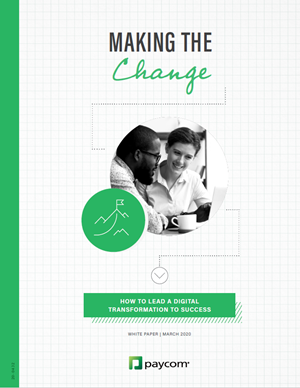 Paycom provides transformative HR and payroll software for the entire employee life cycle. A single, easy-to-use database empowers employees to access, manage and update their own HR data – from benefits and PTO to direct deposit and everything in between – all under the same digital “roof.” The transfer of responsibility from HR to employee increases accuracy, security and compliance; improves the overall employee experience, thus boosting retention levels; and frees HR to focus on driving greater business value.