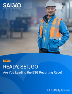 Ready, Set, Go: Are You Leading the ESG Reporting Race? This survey gathers the insight of 352 environment, health, and safety (EHS) professionals globally about how organizations perceive ESG and sustainability, where they stand on implementing these efforts, and what their strategy is for 2022 and beyond. In this survey we touch on: